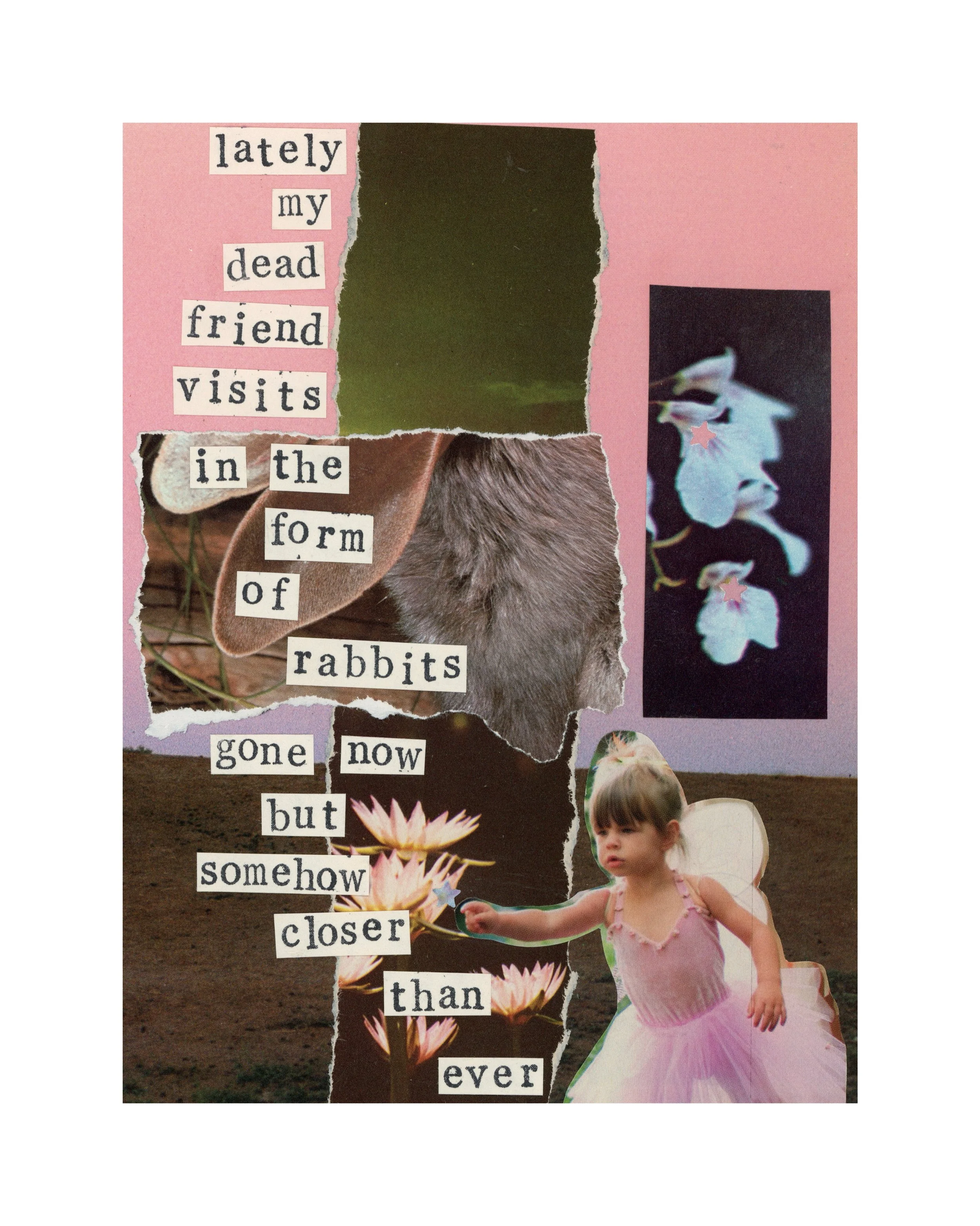 lately my dead friend visits in the form of rabbits the signs are all around but you keep coming back for more everything in my life feels like love wake up love what’s the pointe you make me feel like a girl cut down the trees but i’m not your baby anymore taking note peace is here i can shine on everything or nothing but i keep finding myself going up